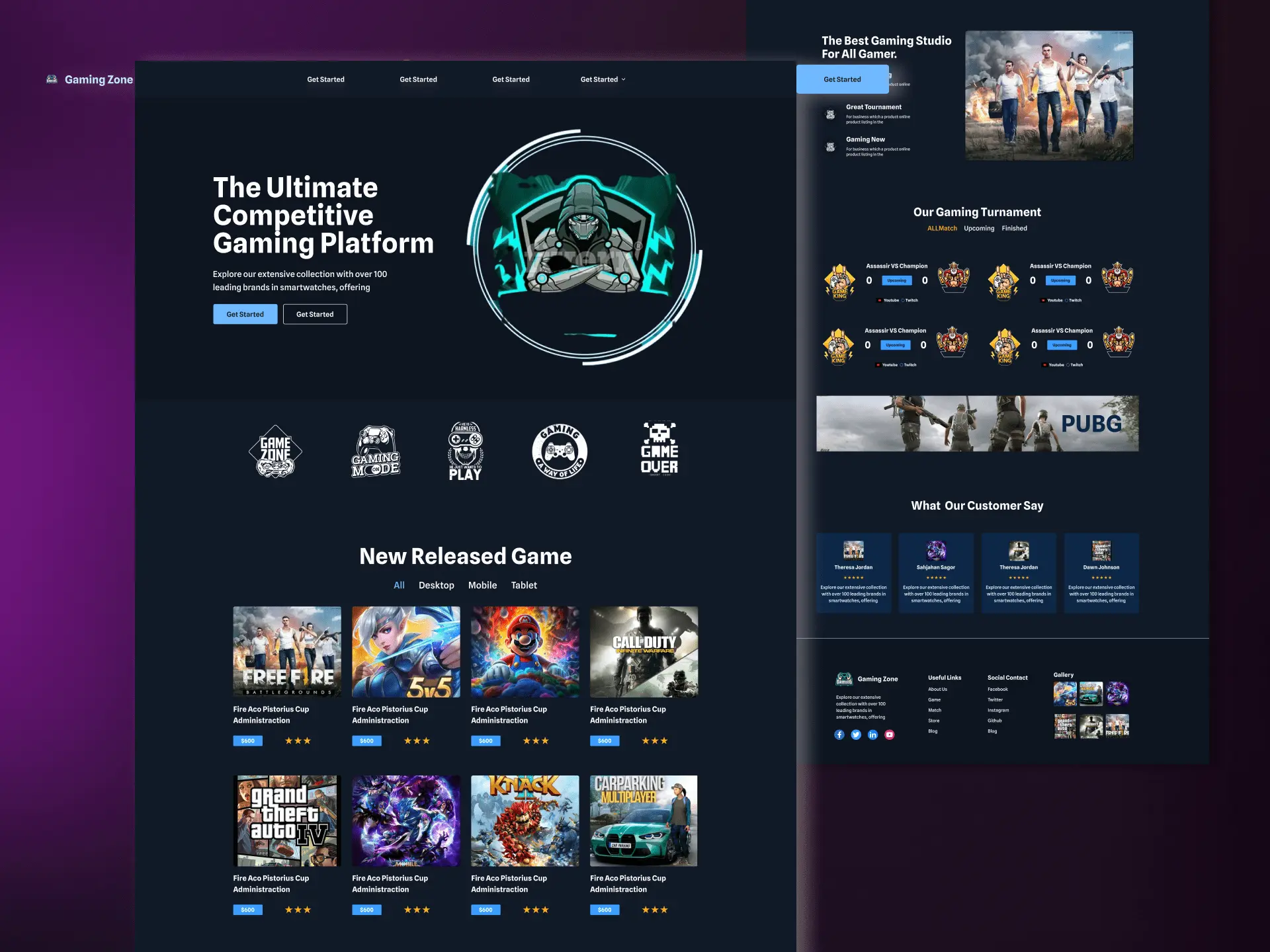 Introducing Gaming Zone a dynamic UI kit meticulously crafted for gaming enthusiasts and developers alike, now available on UI8. With its sleek and modern design, this kit offers an immersive experience tailored for gaming platforms and communities. Dive into a world of vibrant colors, intuitive layouts, and seamless navigation, perfect for showcasing your latest gaming projects or building captivating interfaces. Designed with responsiveness in mind, Gaming Zone ensures flawless adaptation across various devices, keeping users engaged no matter where they access it. From the landing page that grabs attention to the intricately designed components, this UI kit is powered by Tailwind CSS, offering easy customization through its comprehensive set of variables. Elevate your gaming portfolio or project with Gaming Zone and captivate your audience with its captivating design and functionality.